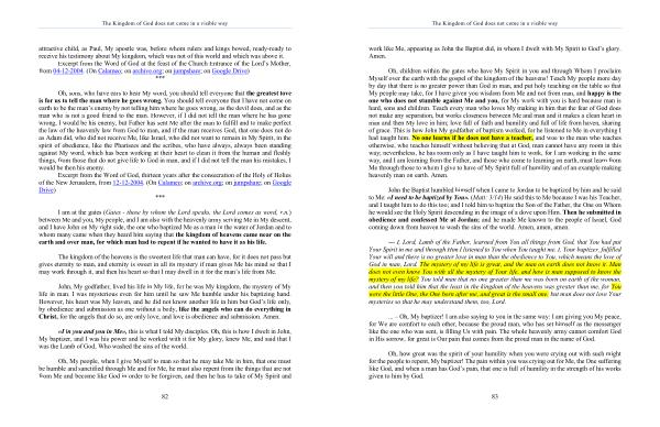 John , My godfather , lived his life in My life , for he was My kingdom , the mystery of My life in man . I was mysterious even for him until he saw Me humble under his baptizing hand . However , his heart was My leaven , and he did not know another life in him but God ’ s life only , by obedience and submission as one without a body , like the angels who can do everything in Christ , for the angels that do so , are only love , and love is obedience and submission . Amen .