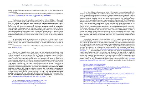 He comes in the same way as He ascended : He comes with the clouds 9 ”, r . n .). Now it remains to see what I should do with those that spat on the requested establishment for the time which we reached at with the ages of the heavens . I , the Lord , will remember of those who have the name declared by the heaven by this prophecy , and I will search into the flesh and stone , and I will shake up every house of the Christians which have the witness of this prophecy , and I will put the question : „ Why did you leave the Lord , you house of Israel , in order to worship the idols of your body and of the evil age ?” ( See the selection topic : „