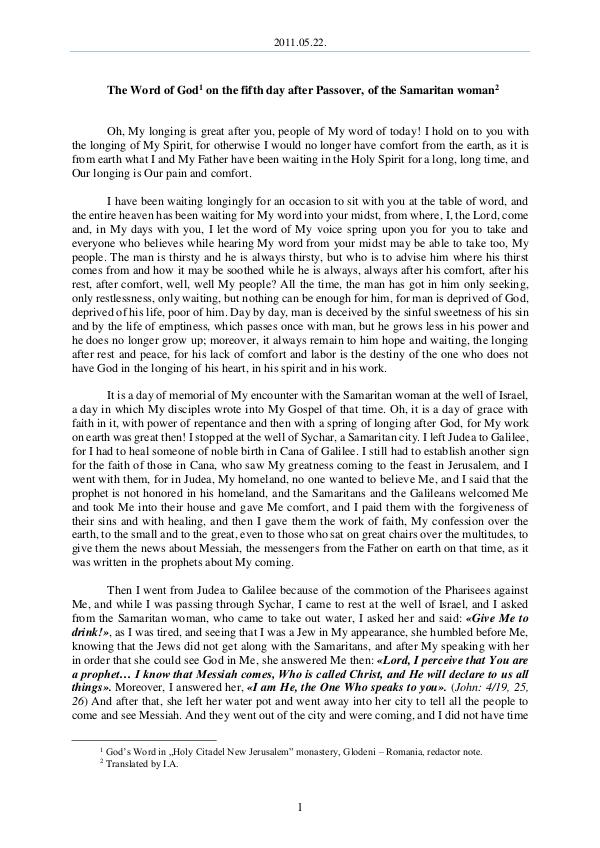 The Word of God 1 on the fifth day after Passover, of the Samaritan woman 2