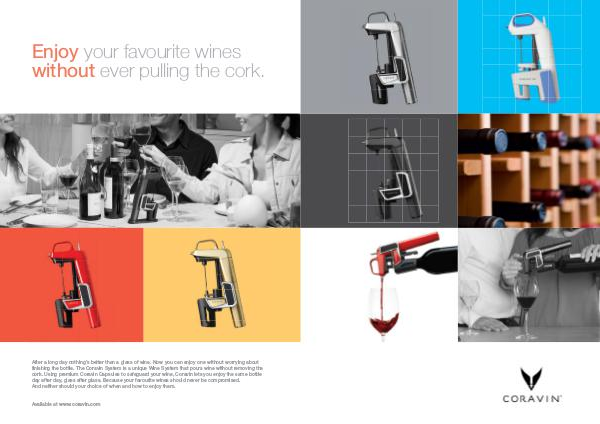 finishing the bottle. The Coravin System is a unique Wine System that pours wine without removing the