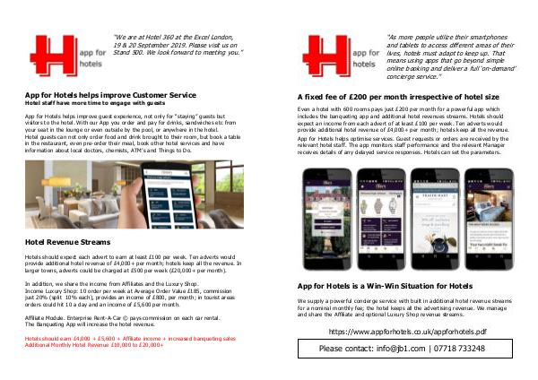 provide additional hotel revenue of £4,000+ per month; hotels keep all the revenue. In