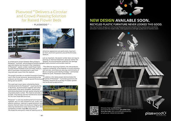 A collaboration project between Berry Global ’ s Plaswood™ business , and ecological transformation specialist Veolia has resulted in the installation of Plaswood™ plastic lumber raised flower beds outside Arsenal Football Club ’ s Emirates stadium , which have been manufactured in part from recycled seat covers from the stadium .