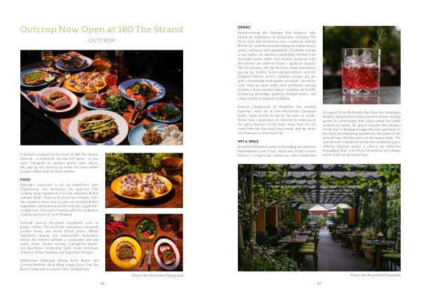 DRINKS Award-winning Bar Manager Rob Simpson , who honed his experience at restaurants including The Clove Club and Gymkhana , has curated an entirely British list - with the island providing the entire menu ’ s spirits , infusions and ingredients *. Cocktails include a pea vodka ; an aperitivo masterfully formed from discarded oyster shells ; and leftover tomatoes from the kitchen are used to infuse a signature negroni . The list includes : the No Fly Zone , made from barley eau de vie , London honey and gooseberry , and the Cropped Martini , which combines London dry gin with a homemade herb garden vermouth , served ice cold . Outcrop works with small distilleries striving to have a more positive impact : building soil health , eschewing pesticides , growing heritage grains , and using smarter ecological packaging .