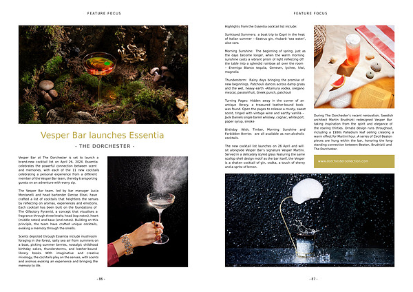 Highlights from the Essentia cocktail list include :