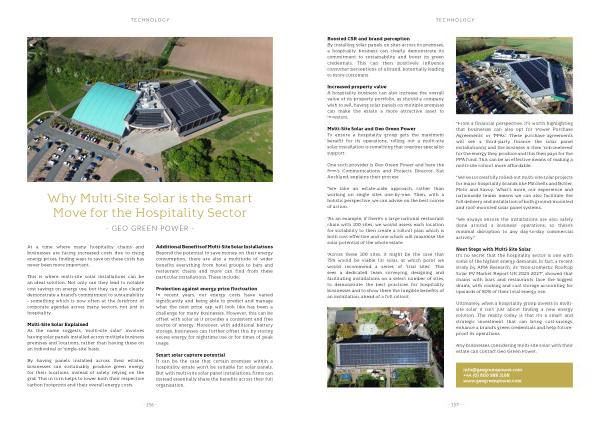 Ultimately, when a hospitality group invests in multisite solar it isn’ t just about finding a new energy solution. The reality today is that it’ s a smart and strategic investment that can bring cost-savings, enhance a brand’ s green credentials and help futureproof its operations.