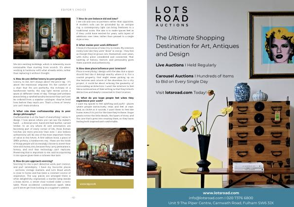 7. How do you balance old and new? I see old and new as partners rather than opposites. A modern sofa can be grounded by an antique rug; a contemporary light can bring freshness to a traditional room. The aim is to make spaces feel as if they could have existed for years, with layers of additions over time, rather than pinned to a single style or era. life into existing buildings, which is inherently more sustainable than starting from scratch. It’ s about working in harmony with what already exists, rather than replacing it without thought.