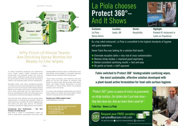 “ Protect 360 ° gives us peace of mind, no guesswork, no sticky buildup. Our tables don’ t just look clean – they feel clean too. And our team feels cared for”.