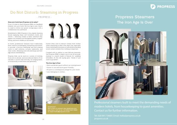 Does your hotel have Propress on its radar? If not, it’ s time to check Propress MINI, our handheld steamer, into your hotel. The Iron Age is over; there’ s no need to clutter your guests’ storage space with a cumbersome iron and board.