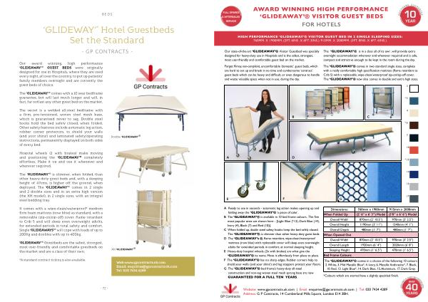 AWARD WINNING HIGH PERFORMANCE‘ GLIDEAWAY’® VISITOR GUEST BEDS FOR HOTELS