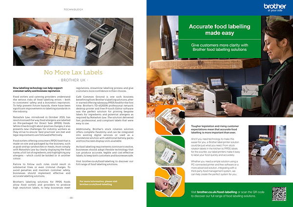 Café Common Ground is one such business benefitting from Brother’ s labelling solutions, after it started offering takeaway PPDS food for the first time. Brother’ s TD-4520DN professional network desktop printer and free P-touch Editor software was the perfect solution for printing bespoke labels for ingredients and potential allergens as required by Natasha’ s Law. The solution delivered fast, professional, and compliant labels that were easy to use.