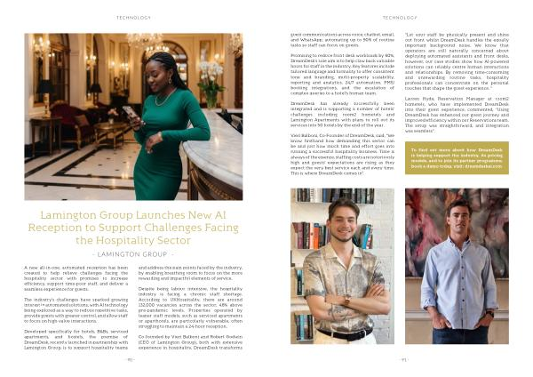 Developed specifically for hotels, B & Bs, serviced apartments, and hostels, the premise of DreamDesk, recently launched in partnership with Lamington Group, is to support hospitality teams and address the pain points faced by the industry, by enabling breathing room to focus on the more rewarding and impactful elements of service.