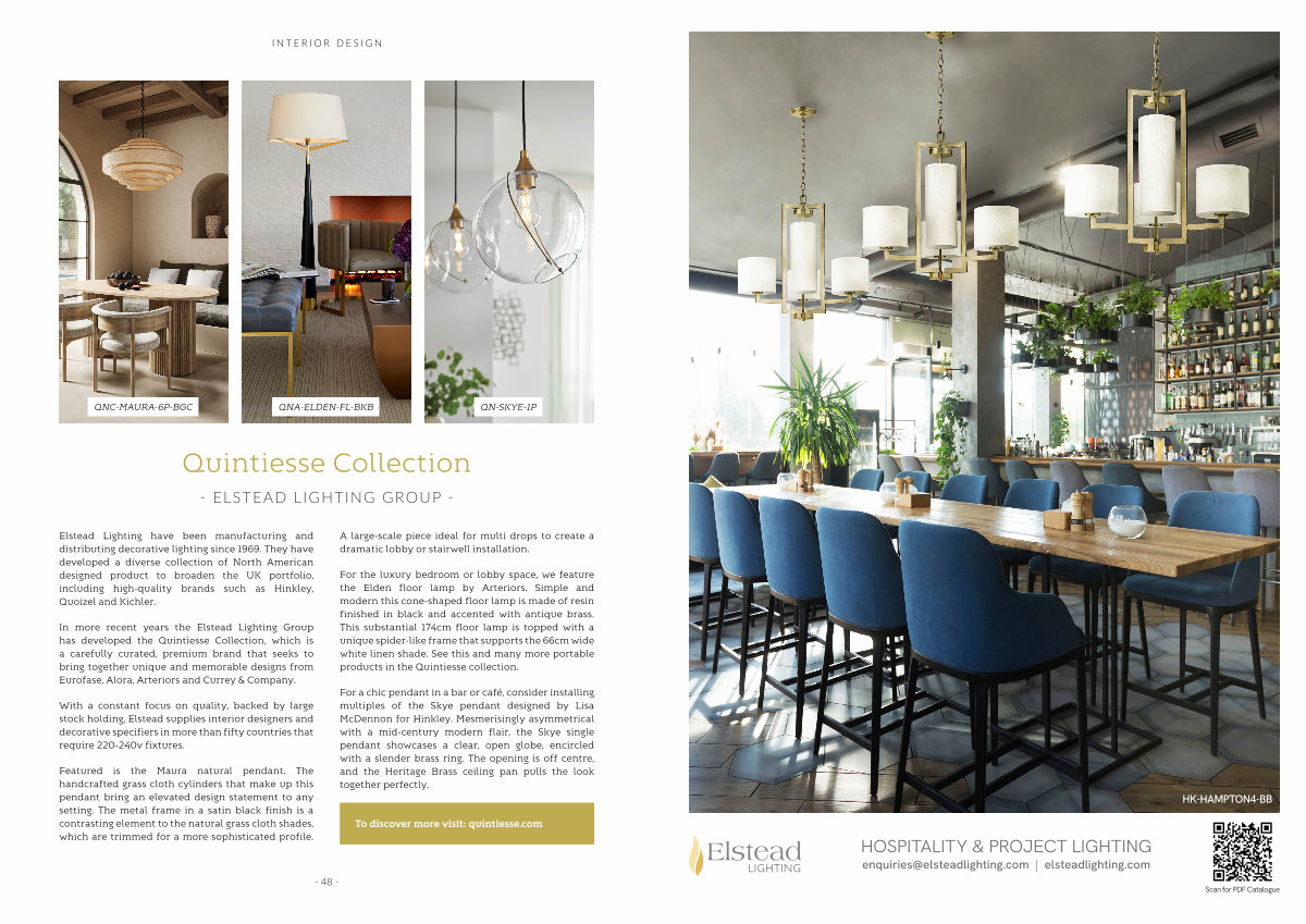 HOSPITALITY & PROJECT LIGHTING enquiries @ elsteadlighting. com | elsteadlighting. com