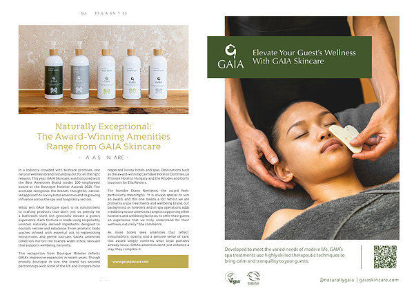 As more hotels seek amenities that reflect sustainability, quality and a genuine sense of care, this award simply confirms what loyal partners already know: GAIA’ s amenities don’ t just enhance a stay, they complete it.