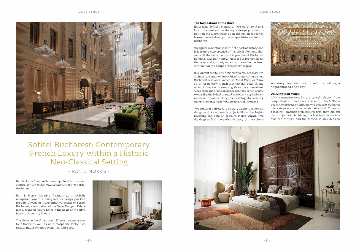 Ran & Morris Creative Partnership, a globally recognized, award-winning interior design practice, proudly unveils its transformative design of Sofitel Bucharest, a restoration of the Oscar Maugsch Palace into a branded luxury hotel in the heart of the city’ s historic University Square.