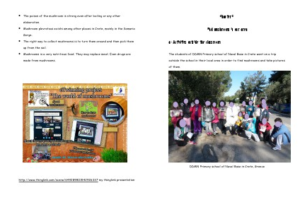 outside the school in their local area in order to find mushrooms and take pictures