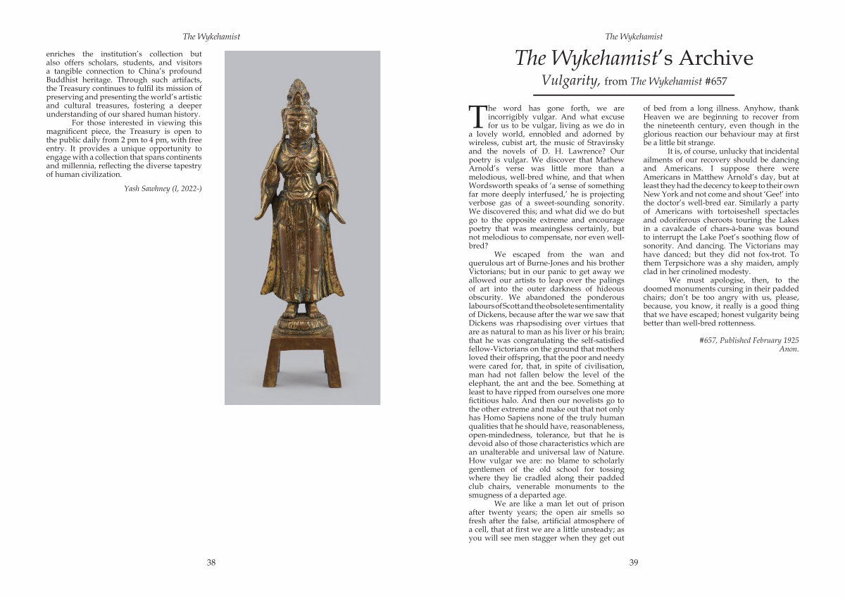 enriches the institution’ s collection but also offers scholars, students, and visitors a tangible connection to China’ s profound Buddhist heritage. Through such artifacts, the Treasury continues to fulfil its mission of preserving and presenting the world’ s artistic and cultural treasures, fostering a deeper understanding of our shared human history.