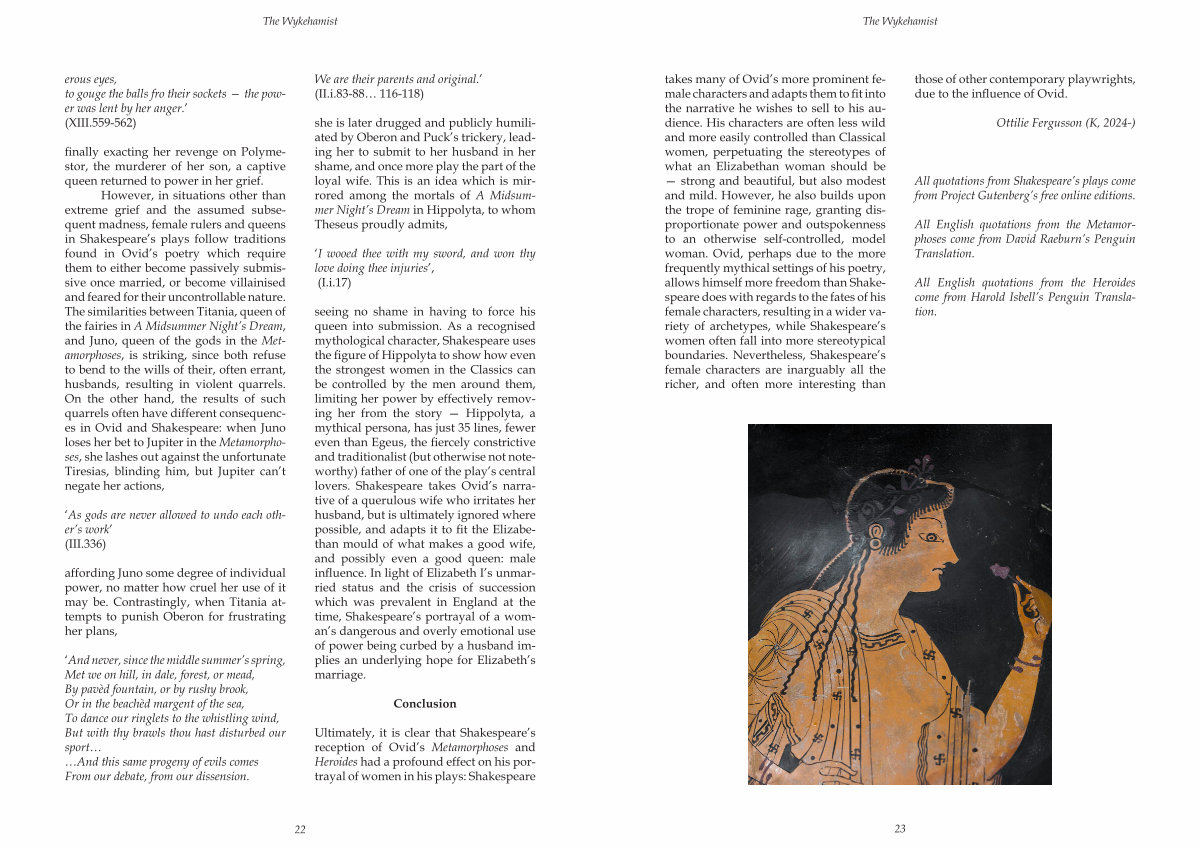 Ultimately, it is clear that Shakespeare’ s reception of Ovid’ s Metamorphoses and Heroides had a profound effect on his portrayal of women in his plays: Shakespeare