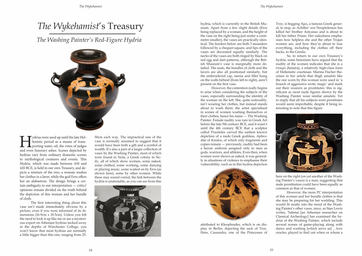 The first interesting thing about this vase isn’ t made immediately obvious by a picture, even if you were informed of its dimensions( 16.9cm x 18.5cm). Unless you felt the need to look it up like me or are a mysterious expert on Athenian hydrias tucked away in the depths of Winchester College, you won’ t know that most hydrias are normally a little bigger than this one, ranging from 25-