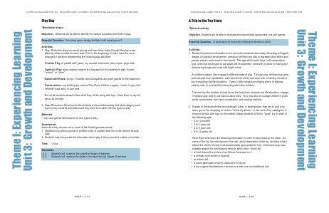 Objective: Students will be able to identify the various purposes and kinds of play.
