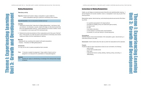 Assessment: Ask the teacher about the rubric by which the manipulatives will be assessed.