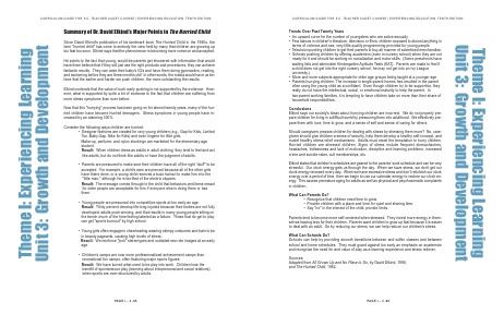 Summary of Dr. David Elkind’s Major Points in The Hurried Child
