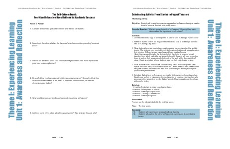 CURRICULUM GUIDE FOR S.C. TEACHER CADET COURSE | EXPERIENCING EDUCATION, TENTH EDITION