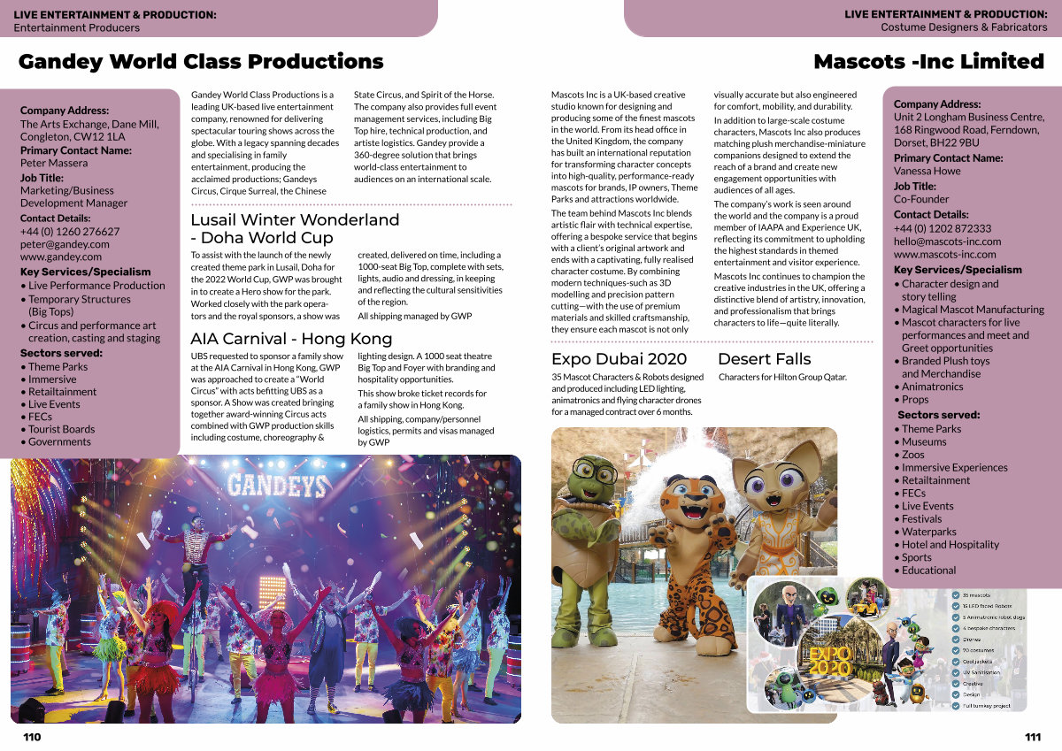 State Circus, and Spirit of the Horse. The company also provides full event management services, including Big Top hire, technical production, and artiste logistics. Gandey provide a 360-degree solution that brings world-class entertainment to audiences on an international scale.