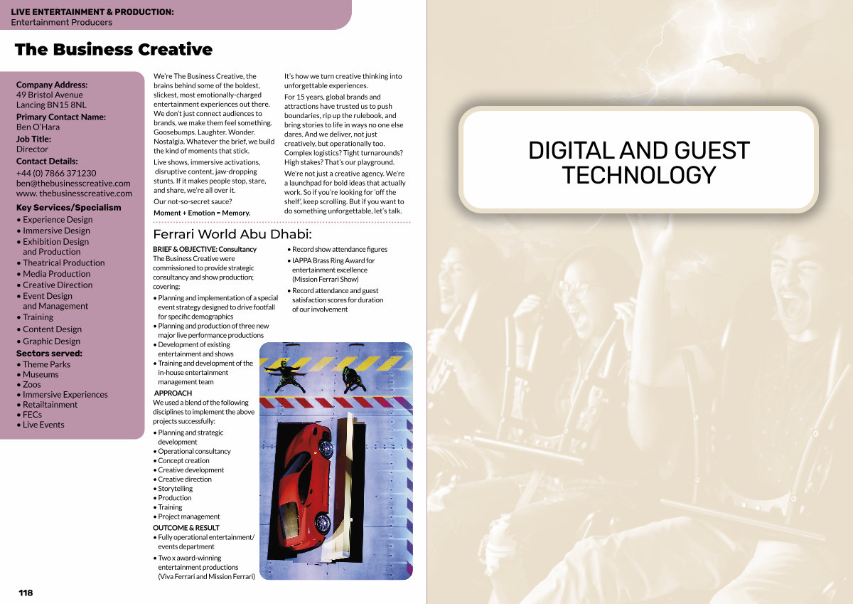 • Two x award-winning entertainment productions( Viva Ferrari and Mission Ferrari)