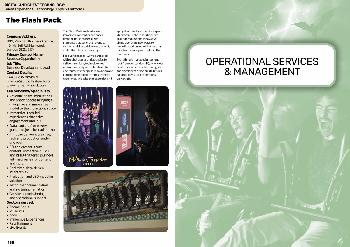 The Flash Pack are leaders in immersive content experiences- creating personalised digital moments that generate revenue, captivate visitors, drive engagement, and collect data responsibly.