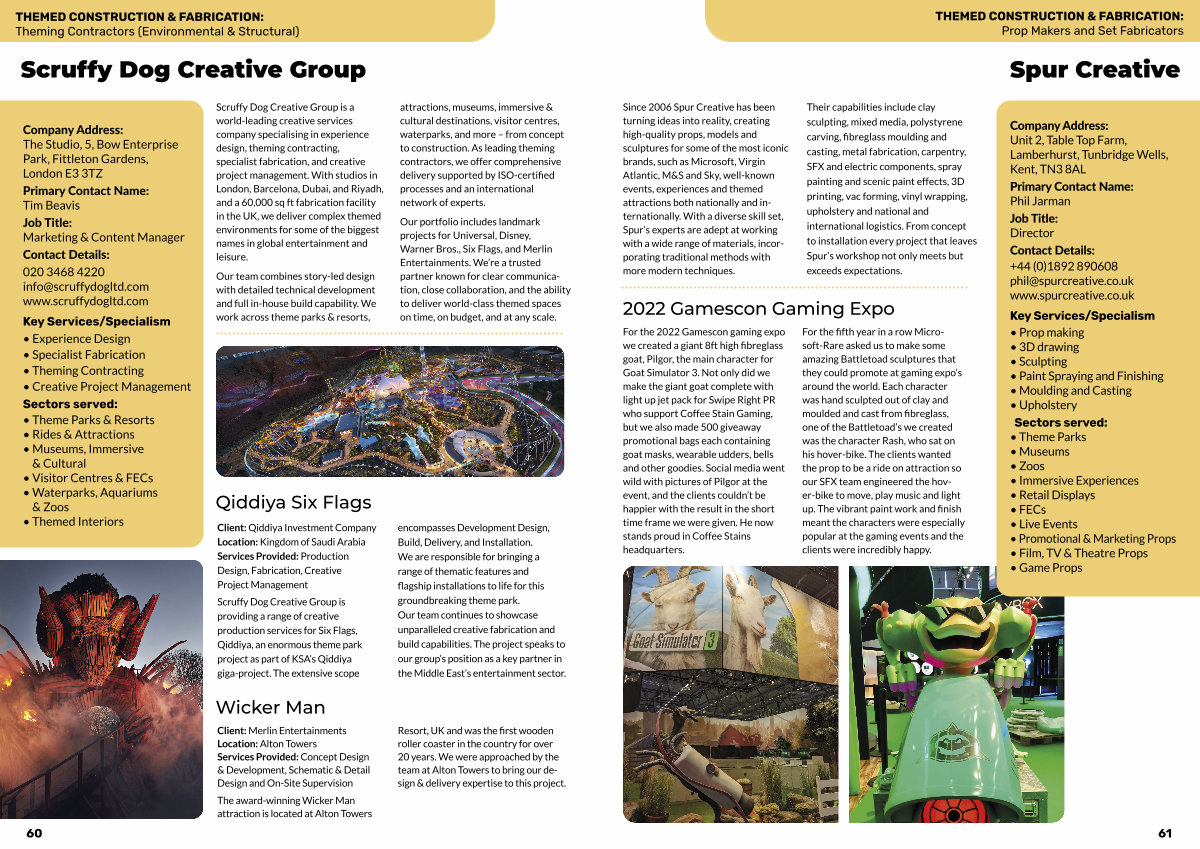 Scruffy Dog Creative Group is a world-leading creative services company specialising in experience design, theming contracting, specialist fabrication, and creative project management. With studios in London, Barcelona, Dubai, and Riyadh, and a 60,000 sq ft fabrication facility in the UK, we deliver complex themed environments for some of the biggest names in global entertainment and leisure.