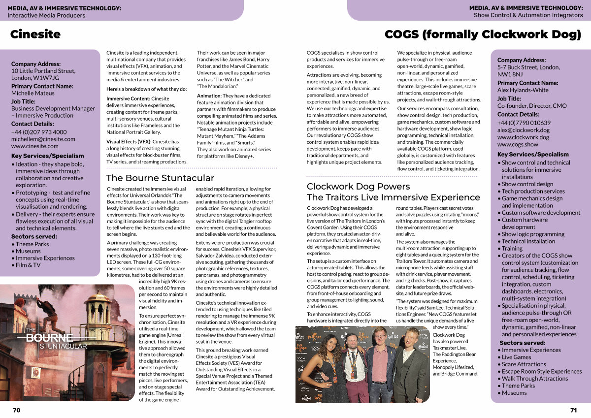 Immersive Content: Cinesite delivers immersive experiences, creating content for theme parks, multi-sensory venues, cultural institutions like Frameless and the National Portrait Gallery.