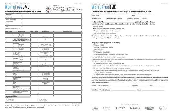 � Facilitate immobilization , healing and treatment of an injury Necessity of Ankle Foot Orthotic molded to patient model :