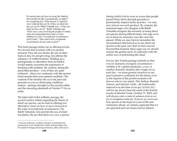 – will for me always bear the mark of the horrific events of Simchat Torah , October 7 th , 2023 , and will always carry a note of sadness even as we try to recapture some joy . Even as we wave our four species in the hope of a year of life and sustenance ahead , we remain cognizant that we are uprooted and our future forever altered .