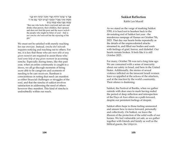 As we stand on the verge of marking Sukkot 5785 , it is hard not to hearken back to the devastating end of Sukkot last year - the murderous rampage of Hamas on October 7th , 2023 . That day our hearts broke repeatedly as the details of the unprecedented attacks streamed in , and filled our bodies and souls with feelings of grief , horror , and disbelief . Our hearts remain broken . It feels like it is still October 2023 .
