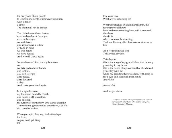 The chain has not been broken even at the edge of the abyss even in the abyss we will dance one arm around a fellow or hand in hand we will dance we have danced And we will dance again