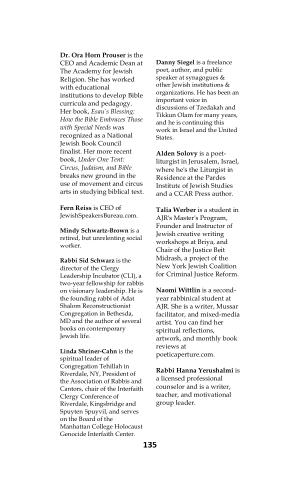 Dr . Ora Horn Prouser is the CEO and Academic Dean at The Academy for Jewish Religion . She has worked with educational institutions to develop Bible curricula and pedagogy . Her book , Esau ’ s Blessing : How the Bible Embraces Those with Special Needs was recognized as a National Jewish Book Council finalist . Her more recent book , Under One Tent : Circus , Judaism , and Bible breaks new ground in the use of movement and circus arts in studying biblical text .