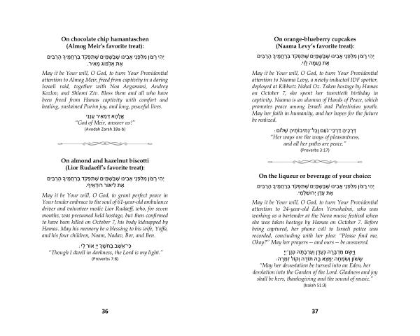 May it be Your will , O God , to turn Your Providential attention to Almog Meir , freed from captivity in a daring Israeli raid , together with Noa Argamani , Andrey Kozlov , and Shlomi Ziv . Bless them and all who have been freed from Hamas captivity with comfort and healing , sustained Purim joy , and long , peaceful lives .