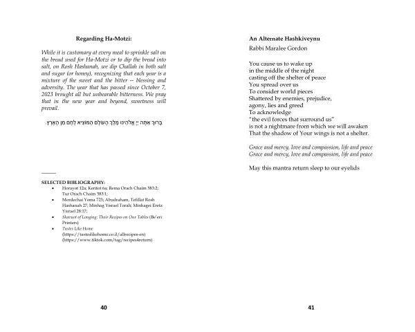 While it is customary at every meal to sprinkle salt on the bread used for Ha-Motzi or to dip the bread into salt , on Rosh Hashanah , we dip Challah in both salt and sugar ( or honey ), recognizing that each year is a mixture of the sweet and the bitter -- blessing and adversity . The year that has passed since October 7 , 2023 brought all but unbearable bitterness . We pray that in the new year and beyond , sweetness will prevail .