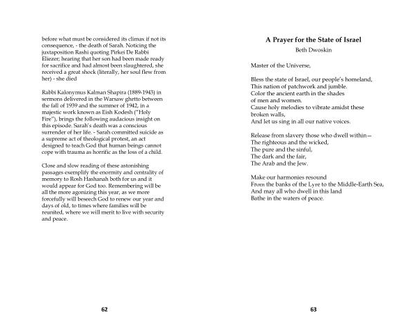 Rabbi Kalonymus Kalman Shapira ( 1889-1943 ) in sermons delivered in the Warsaw ghetto between the fall of 1939 and the summer of 1942 , in a majestic work known as Eish Kodesh (“ Holy Fire ”), brings the following audacious insight on this episode . Sarah ’ s death was a conscious surrender of her life . - Sarah committed suicide as a supreme act of theological protest , an act designed to teach God that human beings cannot cope with trauma as horrific as the loss of a child .