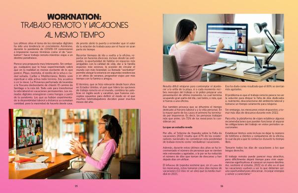 Los últimos años el tema de los nómadas digitales ha sido una tendencia en crecimiento . Asimismo , durante la pandemia de COVID-19 comenzaron a imponerse nuevos términos como el de “ workation ”: hacer trabajo remoto mientras viajas a un destino paradisíaco .
