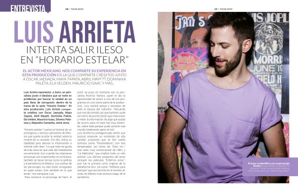 “ Horario estelar ” cuenta la historia de un prestigioso y famoso periodista de México que quiere ocultar la verdad sobre la muerte de su amante . Por ello , utiliza su habilidad para desviar la información e intentar salir ileso . “ Lo que más me gusta de esta serie es que sale del melodrama convencional . Aun cuando las relaciones amorosas son importantes en la historia , también se tocan temas como la política y el periodismo en México . Los sueños de los personajes no sólo están arraigados en quien aman , sino también en lo que aman ” nos comparte Luis . Para construir el personaje de Sami , el actor se puso en contacto con la periodista Romina Ramos , quien le dio la oportunidad de asistir a uno de sus programas en vivo como parte de la producción . Luis recibió apoyo y consejos de todo el equipo del noticiero : “ Recuerdo que ese día tembló , así que también pude ver cómo de pronto tienen que improvisar y meter la información de algo que acaba de ocurrir , para mí esto fue muy divertido , sobre todo porque pude conocer ese mundo totalmente ajeno al mío ”. Luis Arrieta ha protagonizado series que buscan proponer un contenido de alta calidad . proyectos que se han vuelto icónicos como “ Paramédicos ”, con tres temporadas ; así como de “ Dios Inc .”, una serie muy controversial de HBO ; y “ La Malinche ”, que implicó todo un reto actoral . Los últimos proyectos del actor incluyen las películas “ Enfermo amor ”, que fue la primera cinta original de la plataforma Vix +, así como “ Infelices para siempre ” que se convirtió en el estreno en cines en México más exitoso luego de la pandemia .
