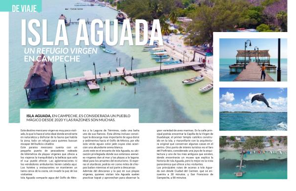 gran variedad de aves marinas . En la calle principal podrás encontrar la Capilla de la Virgen de Guadalupe , el primer templo católico construido en la isla , y maravillarte con la arquitectura original que conservan algunas casas en el centro . Otro punto de interés turístico es el faro del Porfiriato , considerado una joya de la arquitectura y uno de los más antiguos que existen , donde encontrarás un museo que explica la historia de Isla Aguada , pero lo mejor es la vista panorámica que ofrece a los visitantes . Las principales rutas de acceso a Isla Aguada son desde Ciudad del Carmen , que se encuentra a 30 minutos , y San Francisco de Campeche , a 90 minutos .