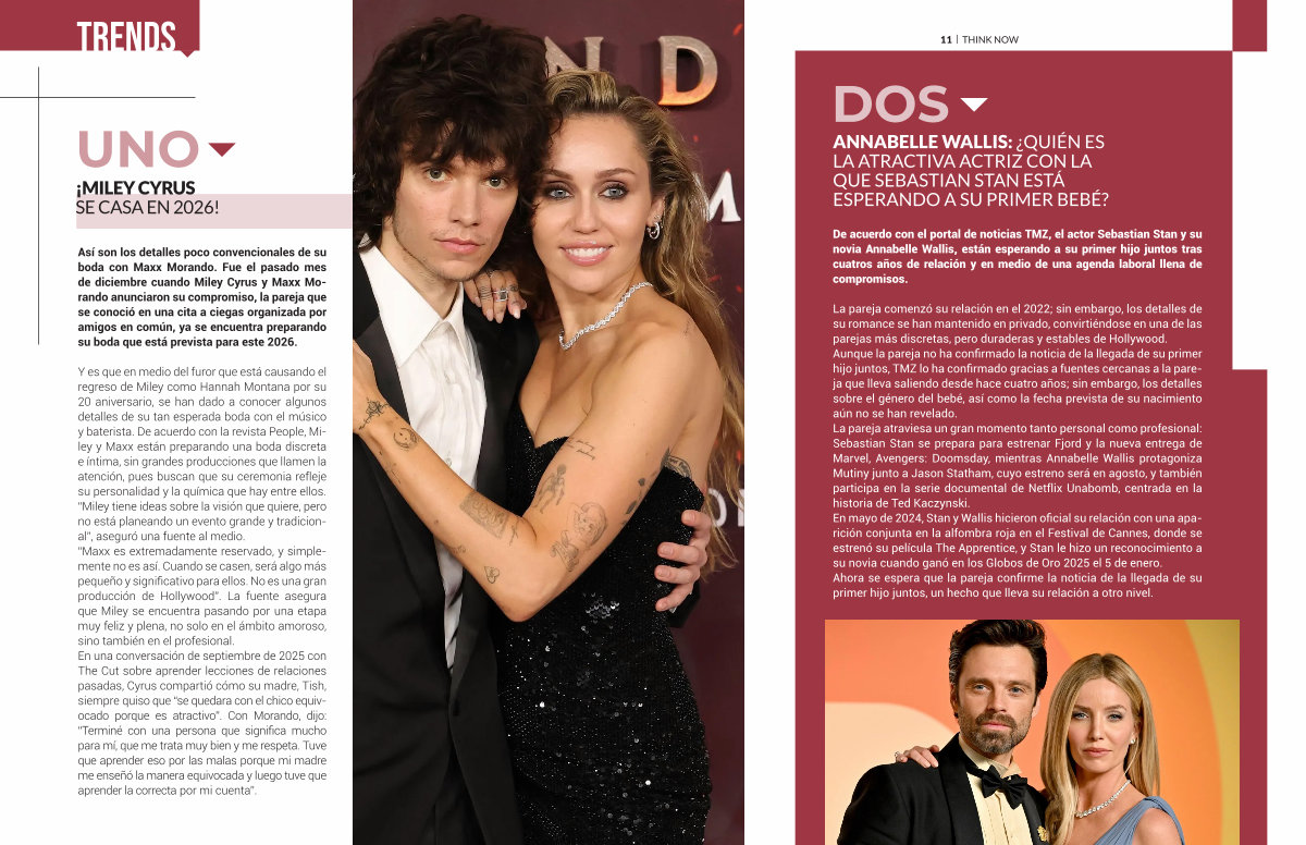 Y es que en medio del furor que está causando el regreso de Miley como Hannah Montana por su 20 aniversario, se han dado a conocer algunos detalles de su tan esperada boda con el músico y baterista. De acuerdo con la revista People, Miley y Maxx están preparando una boda discreta e íntima, sin grandes producciones que llamen la atención, pues buscan que su ceremonia refleje su personalidad y la química que hay entre ellos.“ Miley tiene ideas sobre la visión que quiere, pero no está planeando un evento grande y tradicional”, aseguró una fuente al medio.“ Maxx es extremadamente reservado, y simplemente no es así. Cuando se casen, será algo más pequeño y significativo para ellos. No es una gran producción de Hollywood”. La fuente asegura que Miley se encuentra pasando por una etapa muy feliz y plena, no solo en el ámbito amoroso, sino también en el profesional. En una conversación de septiembre de 2025 con The Cut sobre aprender lecciones de relaciones pasadas, Cyrus compartió cómo su madre, Tish, siempre quiso que“ se quedara con el chico equivocado porque es atractivo”. Con Morando, dijo:“ Terminé con una persona que significa mucho para mí, que me trata muy bien y me respeta. Tuve que aprender eso por las malas porque mi madre me enseñó la manera equivocada y luego tuve que aprender la correcta por mi cuenta”.