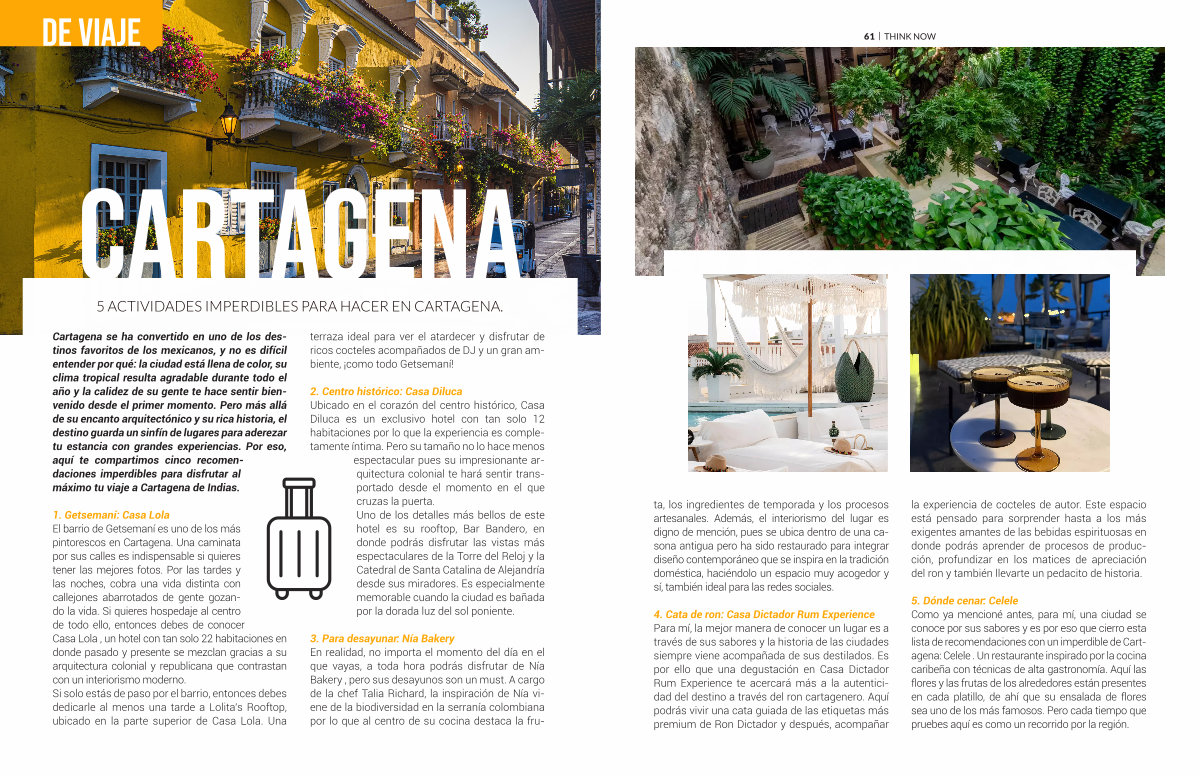 Cartagena se ha convertido en uno de los destinos favoritos de los mexicanos, y no es difícil entender por qué: la ciudad está llena de color, su clima tropical resulta agradable durante todo el año y la calidez de su gente te hace sentir bienvenido desde el primer momento. Pero más allá de su encanto arquitectónico y su rica historia, el destino guarda un sinfín de lugares para aderezar tu estancia con grandes experiencias. Por eso, aquí te compartimos cinco recomendaciones imperdibles para disfrutar al máximo tu viaje a Cartagena de Indias.