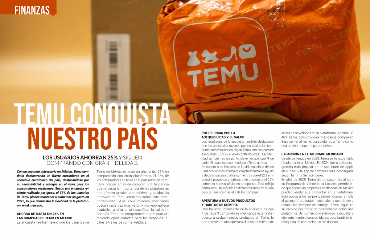 Con su segundo aniversario en México, Temu continúa demostrando un fuerte crecimiento en el comercio electrónico del país, destacándose por su asequibilidad y enfoque en el valor para los consumidores mexicanos. Según una encuesta reciente realizada por Ipsos, el 77 % de los usuarios de Temu planea mantener o aumentar su gasto en 2025, lo que demuestra la fidelidad de la plataforma en el mercado.
