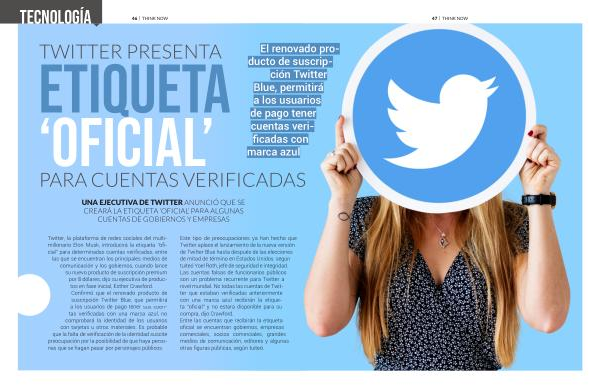 Twitter , la plataforma de redes sociales del multimillonario Elon Musk , introducirá la etiqueta “ oficial ” para determinadas cuentas verificadas , entre las que se encuentran los principales medios de comunicación y los gobiernos , cuando lance su nuevo producto de suscripción premium por 8 dólares , dijo su ejecutiva de productos en fase inicial , Esther Crawford . Confirmó que el renovado producto de suscripción Twitter Blue , que permitirá a los usuarios de pago tener sus cuentas verificadas con una marca azul , no comprobará la identidad de los usuarios con tarjetas u otros materiales . Es probable que la falta de verificación de la identidad suscite preocupación por la posibilidad de que haya personas que se hagan pasar por personajes públicos .