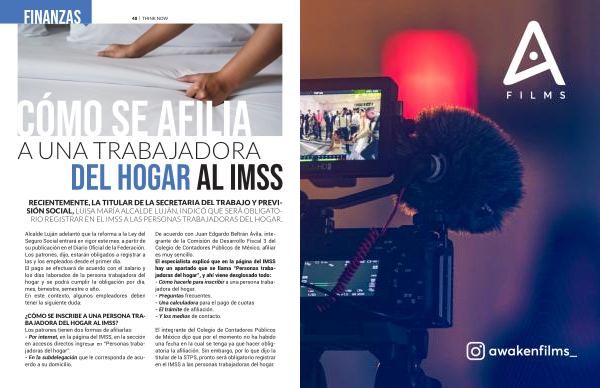RECIENTEMENTE , LA TITULAR DE LA SECRETARIA DEL TRABAJO Y PREVI- SIÓN SOCIAL , LUISA MARÍA ALCALDE LUJÁN , INDICÓ QUE SERÁ OBLIGATO- RIO REGISTRAR EN EL IMSS A LAS PERSONAS TRABAJADORAS DEL HOGAR .