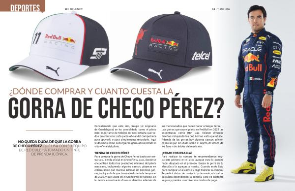 on ennde se l piloto ras en s gorporaico . En ás de los mencionados que hacen honor a Sergio Pérez . Las gorras que usa el piloto en RedBull en 2022 las encontrarás como RBR Cap . Existen diversos diseños incluyendo los que hemos visto que utilice . Además de las gorras hay algunos cascos edición especial que sin duda serán el objeto de deseo de los fans más ávidos del mexicano .