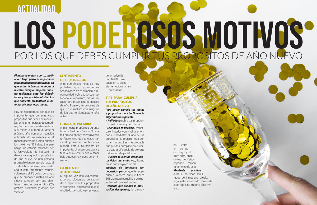 na entra al campo de juego y el cumplimiento de tus propósitos depende mayoritariamente de esta. Mantente positiva, aunque no veas resultados de inmediato, créelo, algo está cambiado. Prémiate cada logro, no importa si es mínimo.
