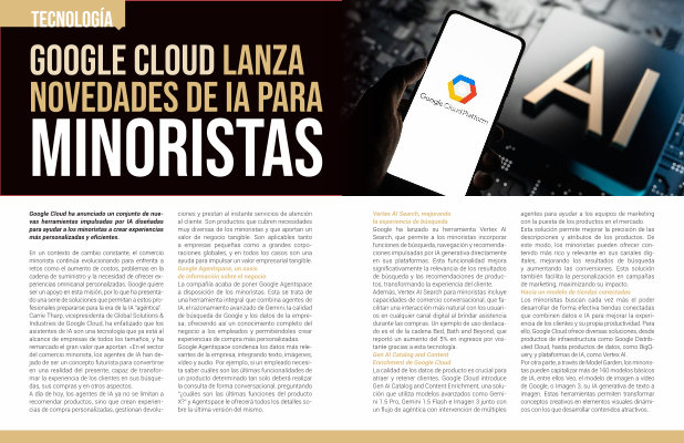 agentes para ayudar a los equipos de marketing con la puesta de los productos en el mercado . Esta solución permite mejorar la precisión de las descripciones y atributos de los productos . De este modo , los minoristas pueden ofrecer contenido más rico y relevante en sus canales digitales , mejorando los resultados de búsqueda y aumentando las conversiones . Esta solución también facilita la personalización en campañas de marketing , maximizando su impacto . Hacia un modelo de tiendas conectadas Los minoristas buscan cada vez más el poder desarrollar de forma efectiva tiendas conectadas que combinen datos e IA para mejorar la experiencia de los clientes y su propia productividad . Para ello , Google Cloud ofrece diversas soluciones , desde productos de infraestructura como Google Distributed Cloud , hasta productos de datos , como BigQuery , y plataformas de IA , como Vertex AI . Por otra parte , a través de Model Garden , los minoristas pueden capitalizar más de 160 modelos básicos de IA , entre ellos Veo , el modelo de imagen a vídeo de Google , o Imagen 3 , su IA generativa de texto a imagen . Estas herramientas permiten transformar conceptos creativos en elementos visuales dinámicos con los que desarrollar contenidos atractivos .